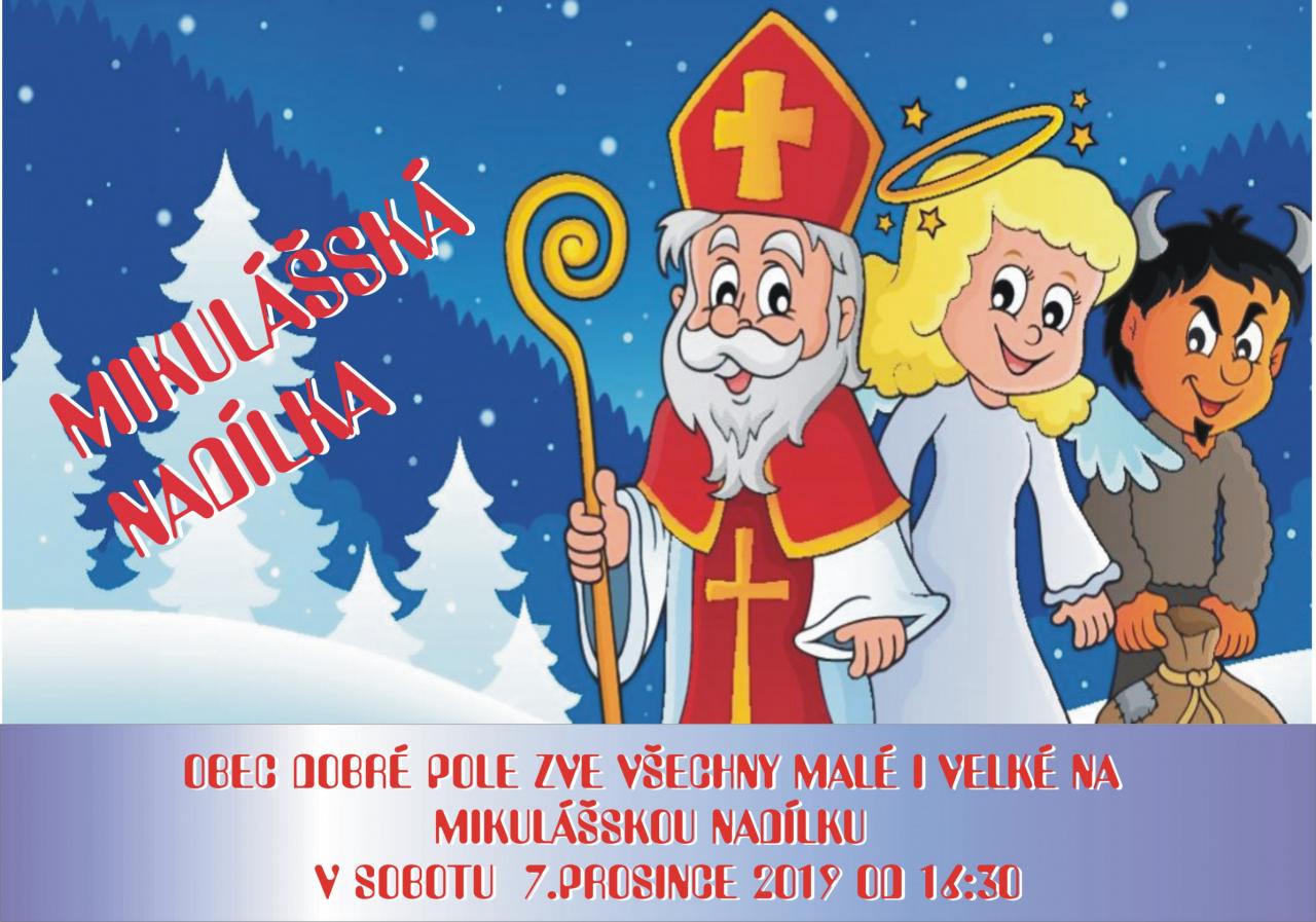 Obec Dobré Pole zve všechny malé i velké na MIKULÁŠSKOU NADÍLKU. Připravena je sladká odměna pro každého andílka i čertíka.