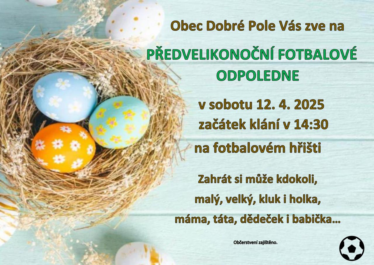 Přijďte si odpoledne zahrát fotbálek na hřiště. Vítáni jsou všichni bez ohledu na věk.